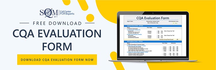 Customer Quality Assurance (CQA) combines call compliance metrics, judged by a QA evaluator, and service quality metrics, judged by a customer via a post-call or email customer survey. CQA is based on the premise of letting the customer be the judge of their own experience when contacting an organization and is one of the best practices for driving improvements in the FCR rate and customer service.