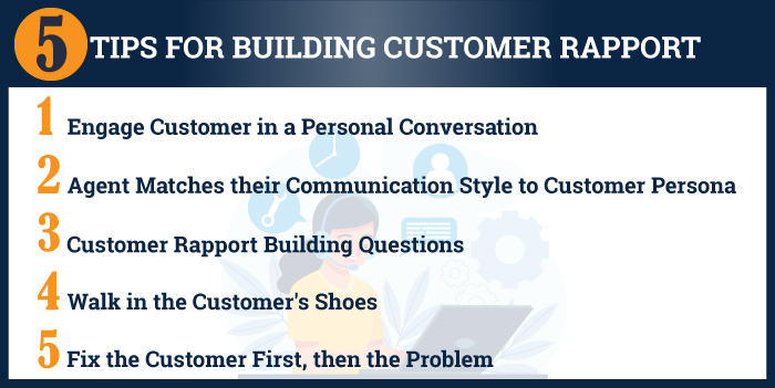 When an agent builds a good rapport, the customer experience (CX) becomes easier for them to handle the call and can help create high customer satisfaction (Csat) and First Call Resolution. Furthermore, when an agent builds customer rapport, it can go a long way toward creating a common bond and gaining customer trust.