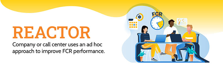 Call centers that use the Reactor practice for improving FCR have a low commitment towards resource allocation and a low commitment to focusing on FCR performance over the long term. Reactors tend to focus on fixing people practices to improve FCR performance because they are less complex and easier to fix. However, reactors will also fix processes and technology practices where a quick win is possible.